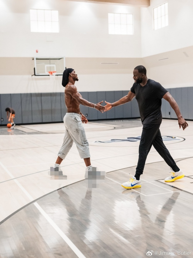 9月2日讯 今日,勇士球星吉米-巴特勒在微博晒出了与队友德雷蒙德-格林一同训练的照片。